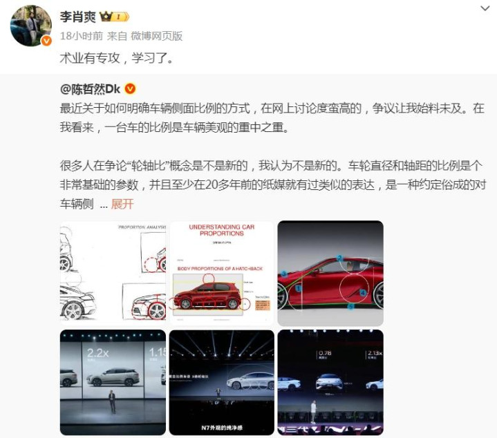 随后,小米汽车副总裁李肖爽在微博上转发了该长文,并评论:“术业有专攻,学习了。”