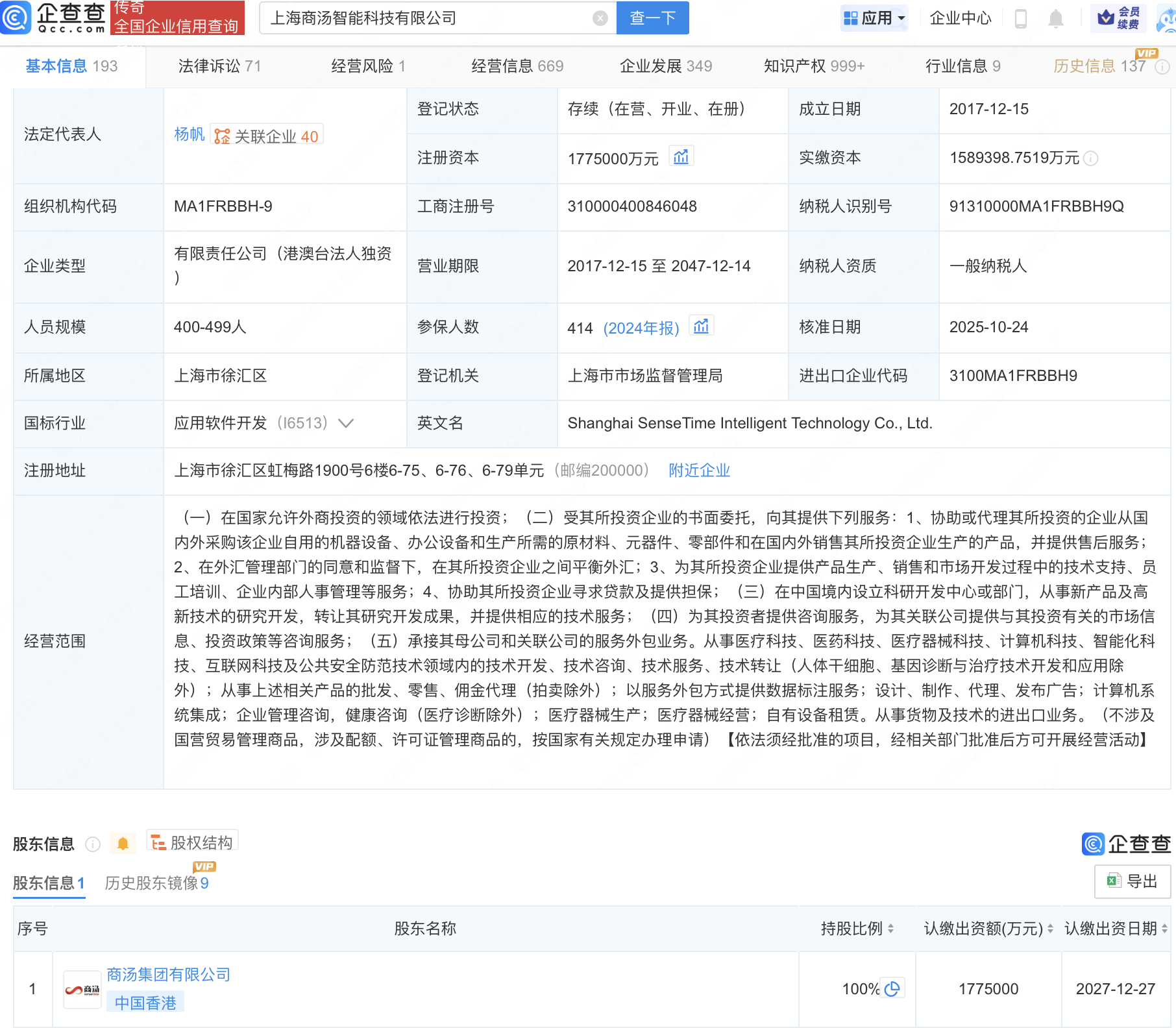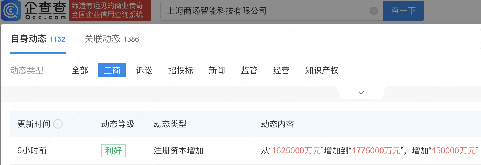 近日,上海商汤智能科技有限公司发生工商变更,注册资本由162.5亿元增至177.5亿元。企查查信息显示配资炒股软件,该公司成立于2017年,法定代表人为杨帆,由商汤集团有限公司全资持股。